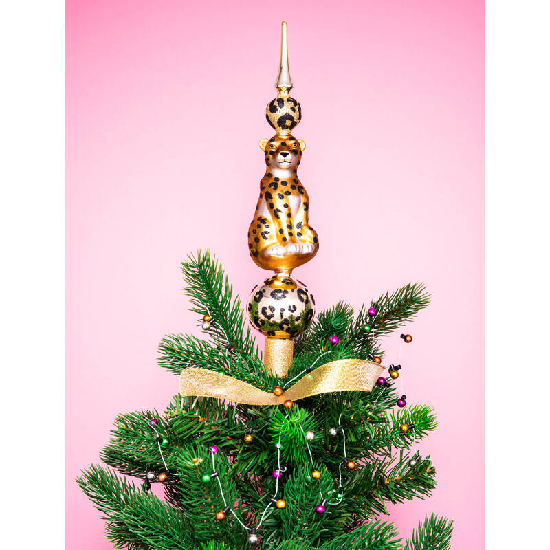 Umhüllt von einem goldglänzenden Leoparden-Muster setzt der Topper ein kraftvolles, modisch-wildes Statement – elegant und provokant zugleich. Mit stolzen 31 cm Höhe ist dieser Baumkronenschmuck groß genug, um zu begeistern, ohne dabei aufdringlich zu wirken – ein majestätischer Abschluss für jede Baumspitze. Dieser Tree Topper ist mehr als nur Dekoration – er bringt Stil, Persönlichkeit und kreative Kühnheit in Ihre weihnachtliche Landschaft.
