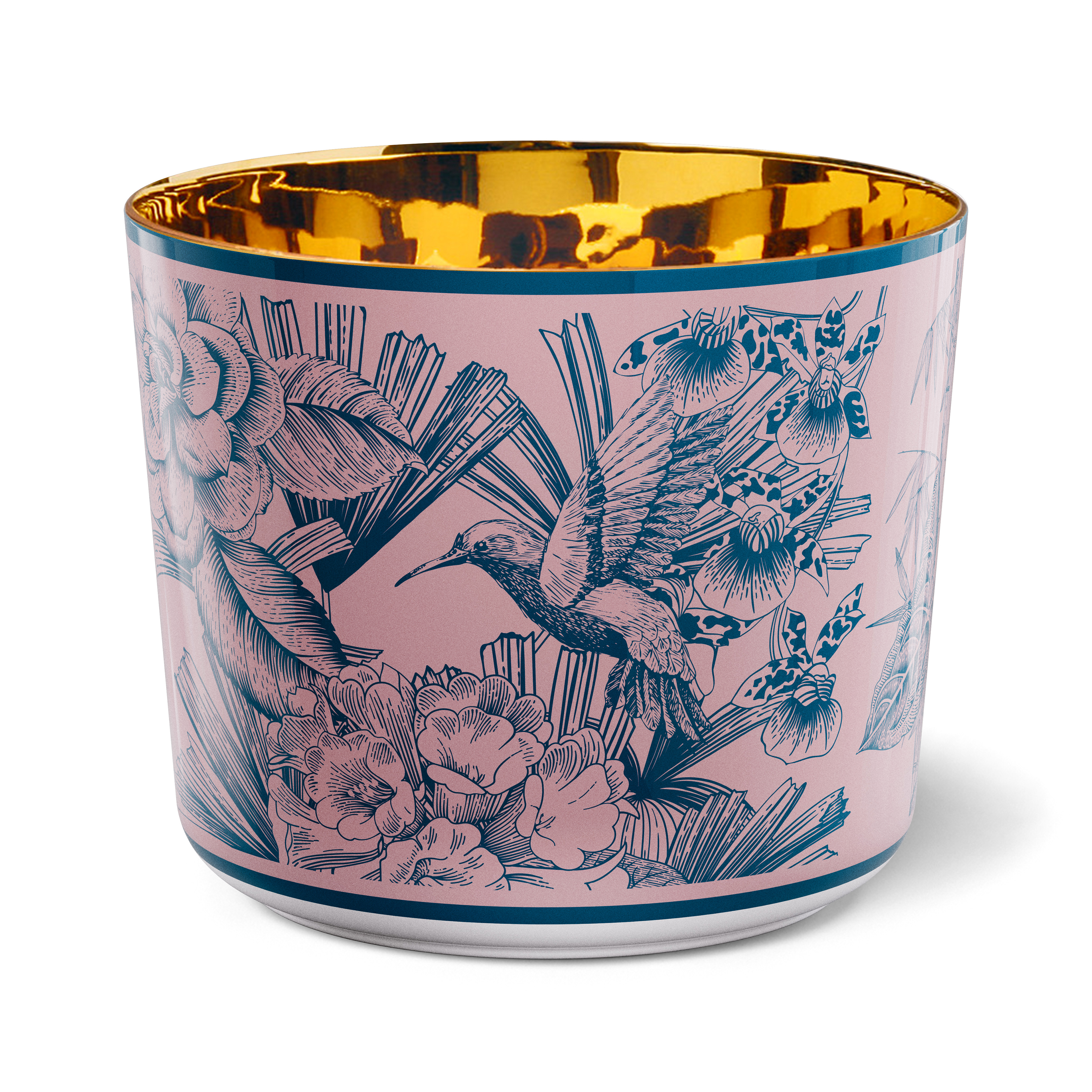 Gefertigt aus hochwertigem Hartporzellan, entsteht der Becher in sorgfältiger Formgebung und kontrolliertem Scherbenaufbau. Das Dekor wird mit größter Genauigkeit aufgebracht, bevor die Innenseite mit einer glänzenden Vergoldung veredelt wird. Diese reflektiert das Licht intensiv und warm und setzt Champagner, Crémant oder Cocktails stilvoll in Szene.
