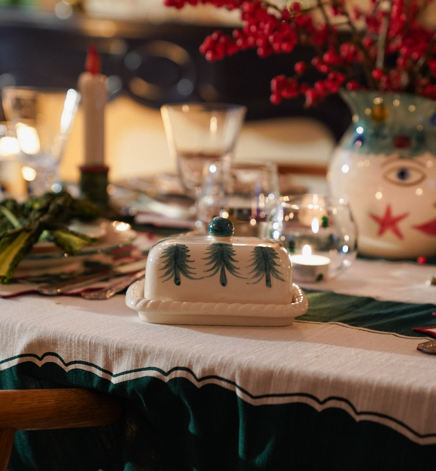 Stilvolle Butterdose mit festlichem Weihnachtswald-Design