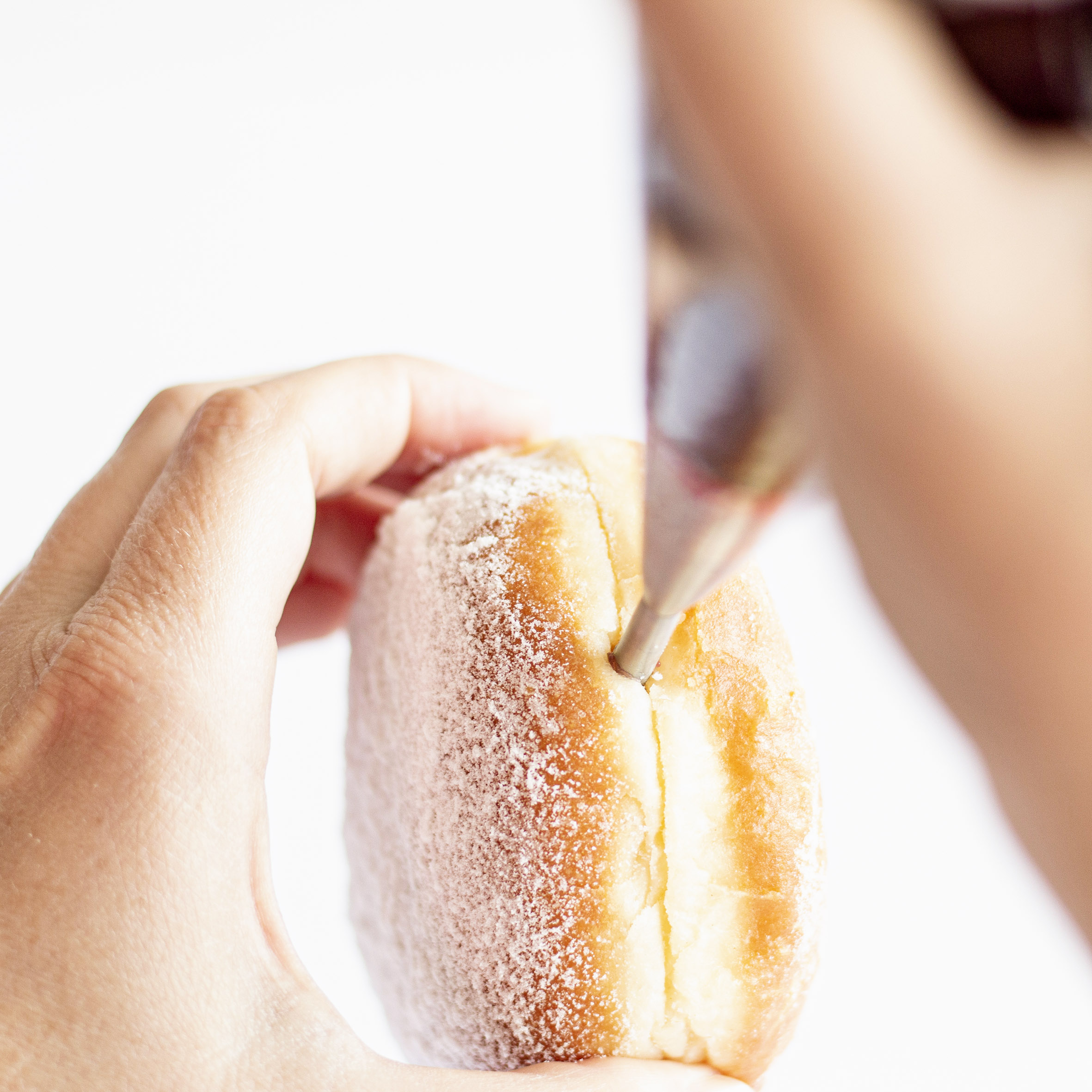 Egal ob man sie jetzt Krapfen, Berliner oder Pfannkuchen nennt – das beliebte Fettgebäck muss auf jeden Fall mit Pflaumenmus, Marmelade, Konfitüre, Schokocreme oder zu Fasching schon auch einmal mit Senf gefüllt werden. Unsere Fülltülle ist dafür perfekt.