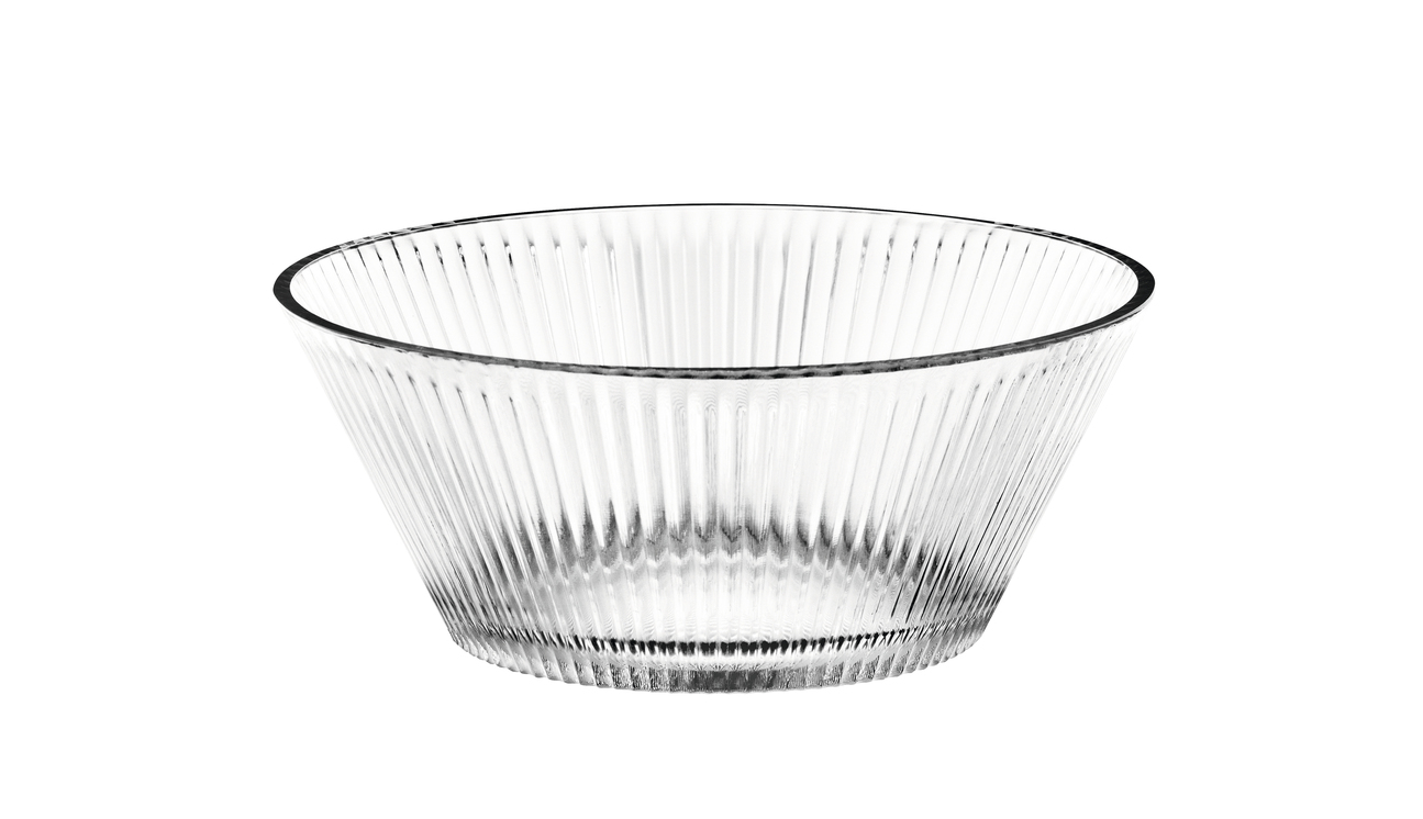 Sanfte Rillen im Glas erzeugen Reflexionen und die Schalen werden zum funkelnden Blickfang.