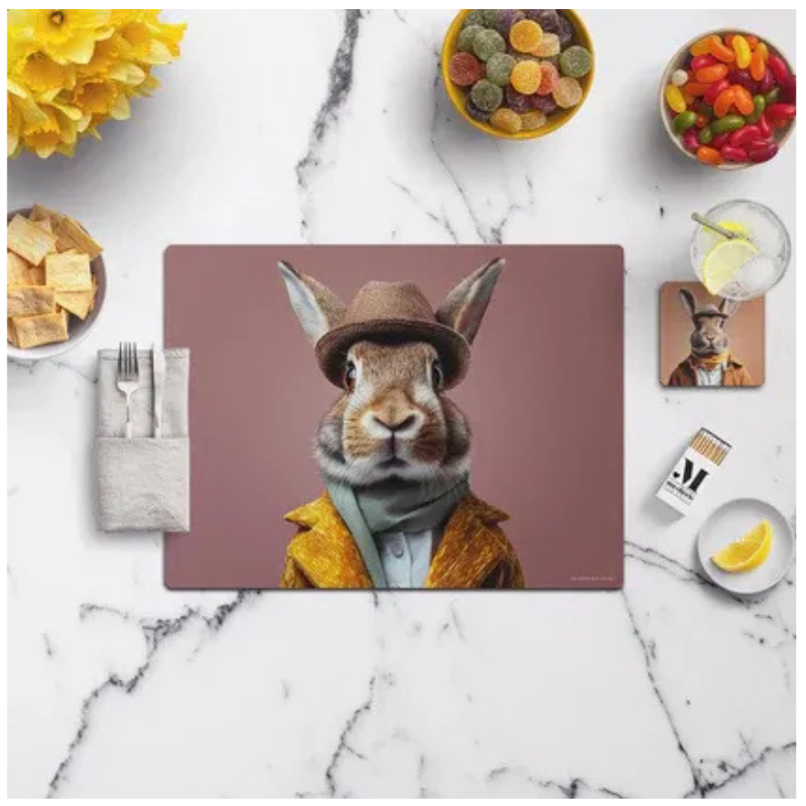 Dieses Tischset bringt frischen Wind auf Ihren Tisch mit seinen lebhaften Tiermotiven in sommerlichen Outfits. Aus strapazierfähigem Vinyl gefertigt, schützt er Ihre Tischoberflächen sowohl drinnen als auch draußen. Die pflegeleichte Oberfläche lässt sich in Sekundenschnelle reinigen – perfekt für den Sommer und als lustiges Geschenk für Tierliebhaber.