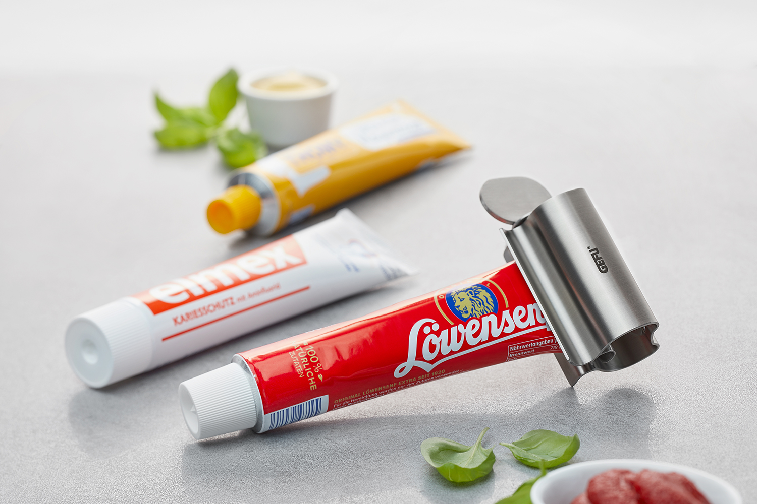 - leert Senf-, Remouladen- oder auch Zahnpastatuben vollständig aus Tube